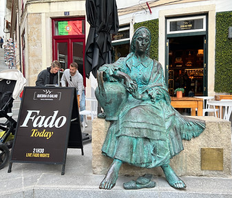 In the evening our group had the delightful experience of attending a concert at Fado ao Centro. It is a cultural center that is dedicated to promoting Coimbra's special brand of Fado. Musicians study and rehearse here, giving a public concert at a posted time each day, but Claúdia had arranged for our group to have a private concert. This was an up-close and personal experience, with the four Fado musicians on a small stage in the very intimate-sized theater. For one piece, they taught us the refrain so that we could join in. The words translated to "All this exists, all this is sad, all this is fate." The music was absolutely beautiful, and afterwards we had the fun of chatting with the musicians, and sipping Port with them, in the little courtyard behind the building.